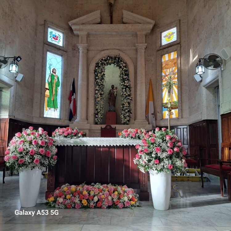 SAN JOSÉ DE OCOA.– Como ya es tradición desde hace ocho años, un grupo de damas ocoeñas se organizó durante las Fiestas Patronales de Ocoa para embellecer la parroquia San José con rosas frescas y variados arreglos florales, realzando la solemnidad y la belleza del templo.